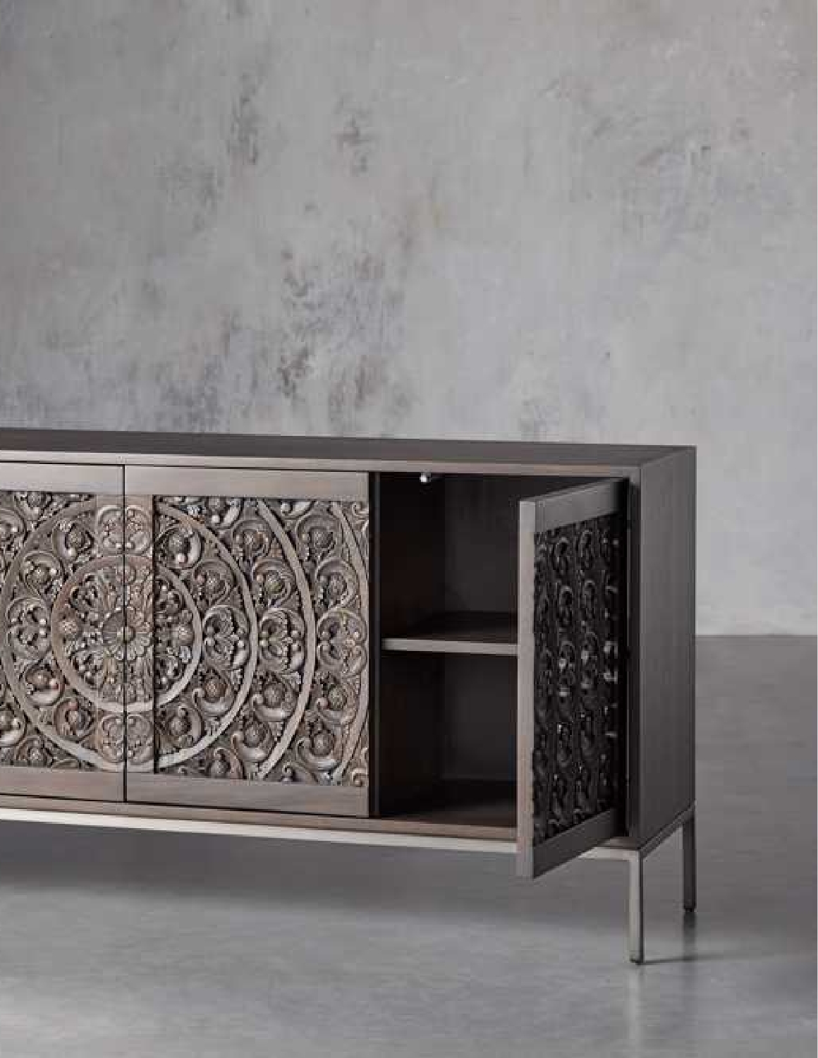 Completely hand-carved over four days by a single artisan—each piece of our Mandara collection is sculpted from solid mahogany. Indonesian craftsmen create stunning designs in small, limited quantities using traditional, time-honored techniques. Featuring incredible detailing and intricately scrolling floral motifs, every wooden surface of these masterpiece sideboards is artisan-finished and lacquered for added protection and subtle sheen. Simple finishes emphasize every carved pattern, allowing natural shadows to define each sculpted line and curve.