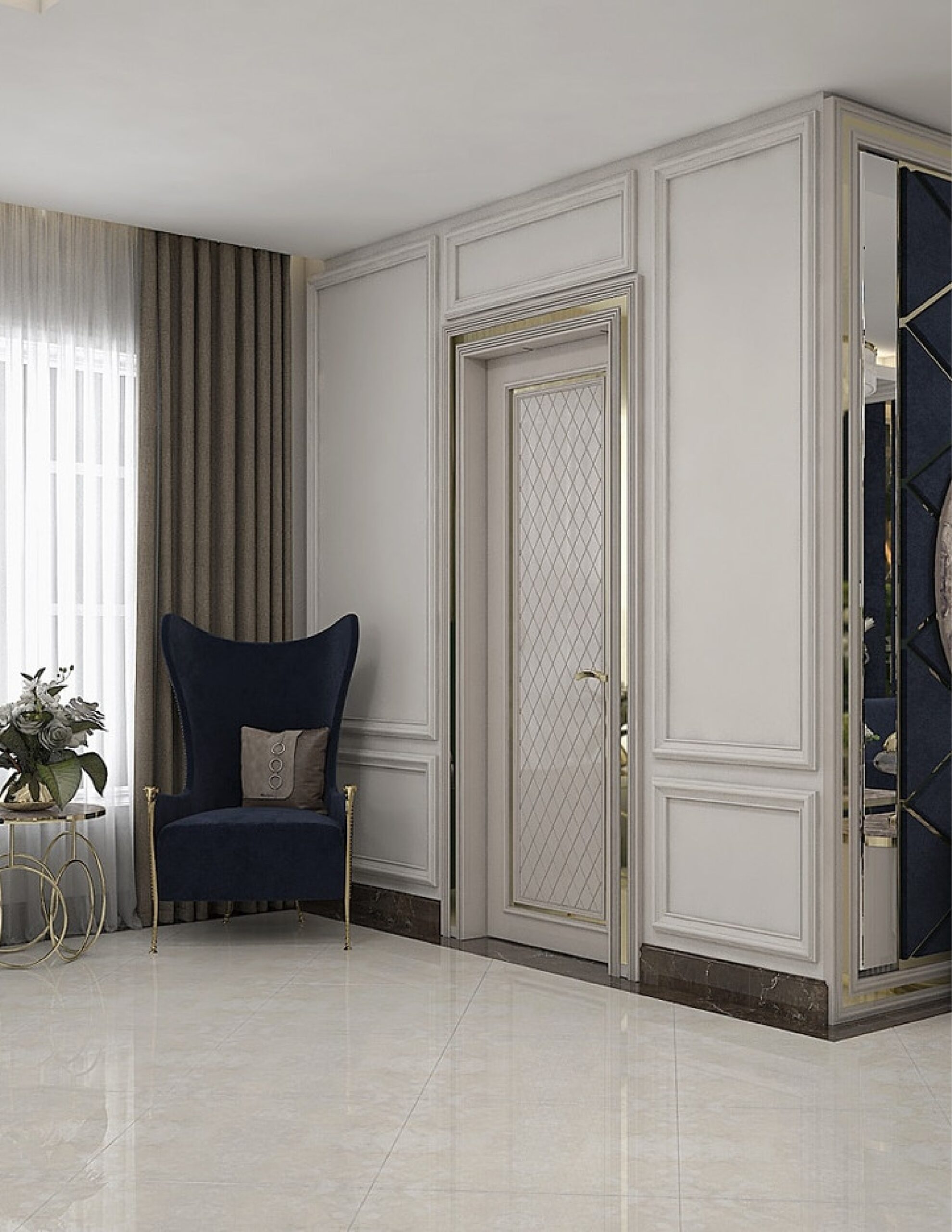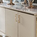 Kerwan is a mix of unexpected geometries. The top comes with a single Black and Gold marble slab by Antolini. The marble is treated with an Azerocare finish which makes the surface totally waterproof.