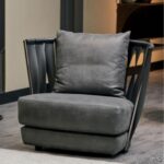 The Twist armchair, an icon of design. It is inspired by the world of luxury and glamour, from which it borrows details like the visible stitching and, above all, the characteristic twisted leather bands that envelop the metal structure. The back of the armchair is composed by leather or econabuk bands, twisted and handsewn with visible stitching. The base of the seat is in pantographed wood, padded with two densities of rubber and an upper layer in feathers. It is covered in fabric, velvet, leather or customizable with any fabric supplied by the customer.